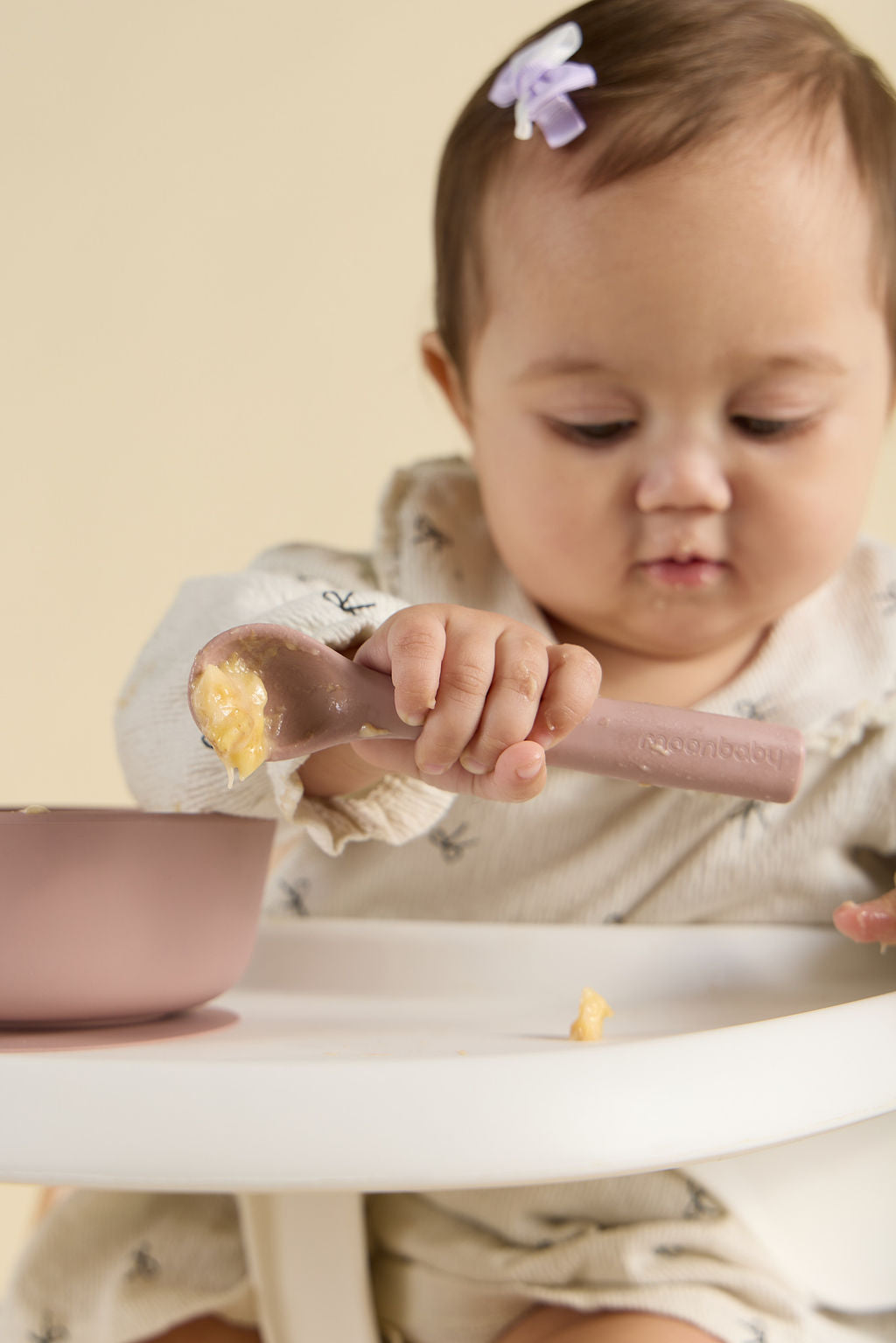 Moonbaby Silicone Fork and Spoon Set – the ultimate mealtime companions for your little one! Designed with love and care, this adorable set is crafted to make self-feeding safe, fun, and easy for babies and toddlers.